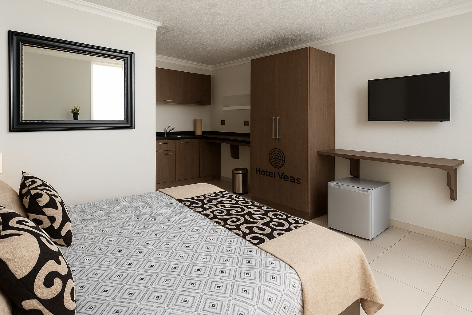 Hotel Veas nace en Antofagasta para ofrecer una estadía cómoda, segura y acogedora tanto a trabajadores de la minería como a turistas. Ubicados a 3 km del terminal de buses y a 22 km del Aeropuerto Andrés Sabella, facilitamos tanto los cambios de turno como la estadía de quienes visitan la ciudad por descanso o turismo.