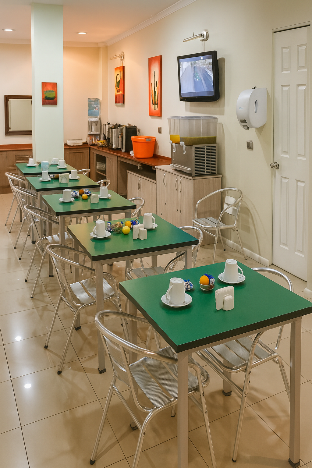 El desayuno es puntual y variado. La ubicación cerca del aeropuerto facilita los traslados del personal. Volveremos a reservar para el próximo proyecto.